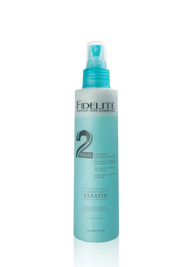 Desenreda el cabello, facilita el peinado y devuelve su esplendor de manera instantánea. Desarrollado en un estado de agregación bifásica formada por una fase oleosa en su parte superior y una fase acuosa en su inferior. Para ser utilizado, debe ser agitado hasta formar una emulsión homogénea. Contiene keratina que protege la estructura original del cabello de las agresiones externas. Protege y reestructura los daños producidos por la radiación UVA y UVB. Recomendable para cabellos sin brillo, descoloridos y alterados por daños diversos. Las siliconas protectoras producen suavidad y brillo, devolviendo a los cabellos dañados su apariencia natural y saludable. Poseen un magnífico desempeño en desenredo y peinabilidad tanto en cabello húmedo como seco. Aportan suavidad aún en las puntas florecidas. Posee filtro UV que protege al cabello de los rayos ultravioleta. No deja efecto oleoso.